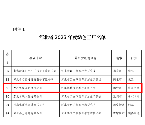 天環(huán)線纜集團(tuán)有限公司入選河北省2023年度“綠色工廠”名單